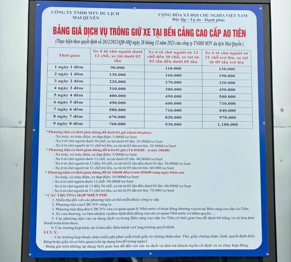 Lưu ý: Gửi xe tại bãi bên ngoài cảng Ao Tiên có mái che, tuy nhiên giá cao hơn trong cảng và cần đi bộ khoảng 500m - 1km để vào cảng đón tàu cao tốc. Vì vậy bạn nên cân nhắc nhu cầu để có lựa chọn phù hợp.