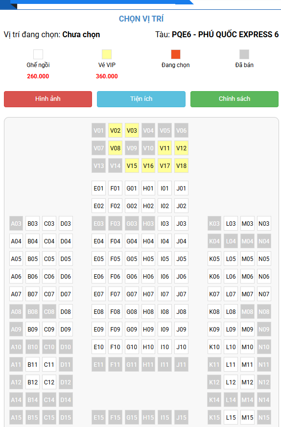 Điểm nổi bật của Phú Quốc Express là hành khách được quyền chọn ghế ngay từ khi đặt vé. Bạn có thể chọn vị trí ghế theo nhu cầu: