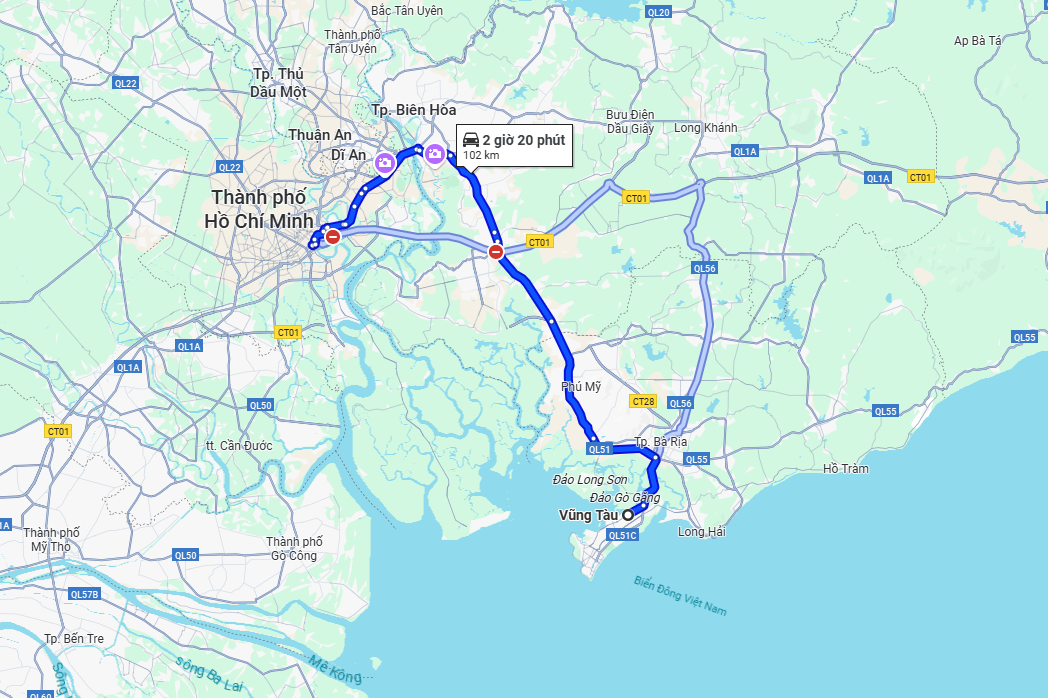 Khoảng cách từ Sài Gòn đi Vũng Tàu bao km?